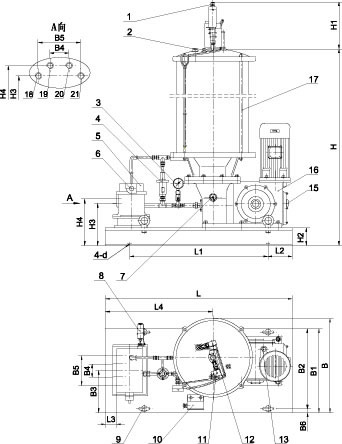 2、使用前先向柱塞泵的减速腔内加入N220的工业齿轮油至油标规定液面。