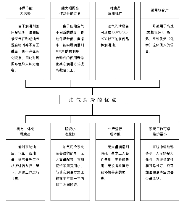 随着工业化程度的不断提高,传统的润滑技术已不能适应,油气润滑就是为了满足这一需要而发展起来的一门新兴技术,在发达国家已被广泛应用于众多的工业领域,并显示出越来越大的优越性。